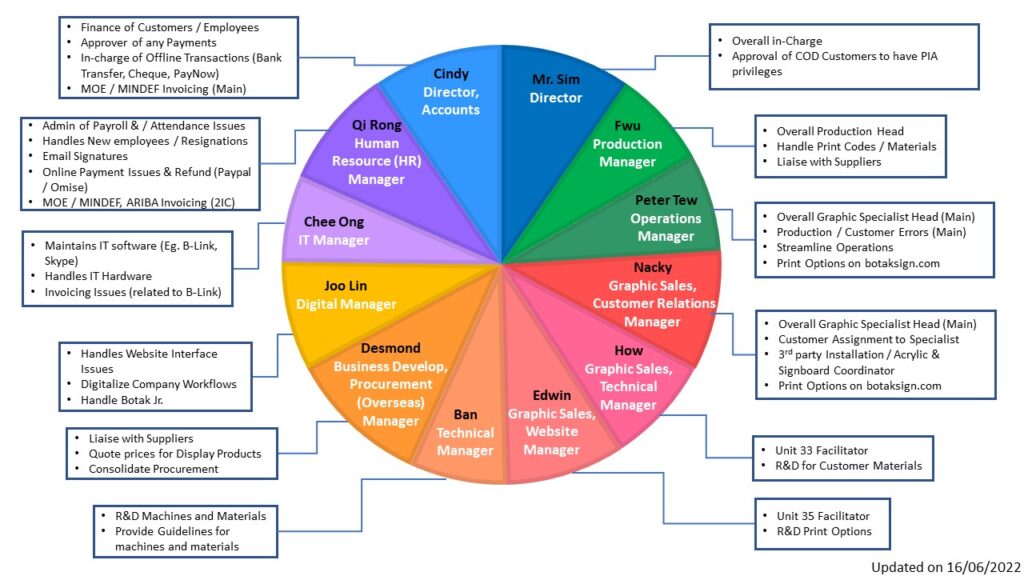 Organisation Chart Here is a chart of what our Managers are in charge of below: This is our full organisational chart below: